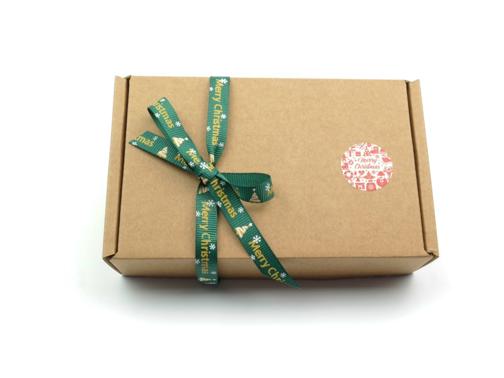 Dárkové balení s náramkem. Obsahuje krabičku s dřevitou vlnou, šňůrkový náramek a kartičku s nápisem. Krabička je zdobena stuhou.