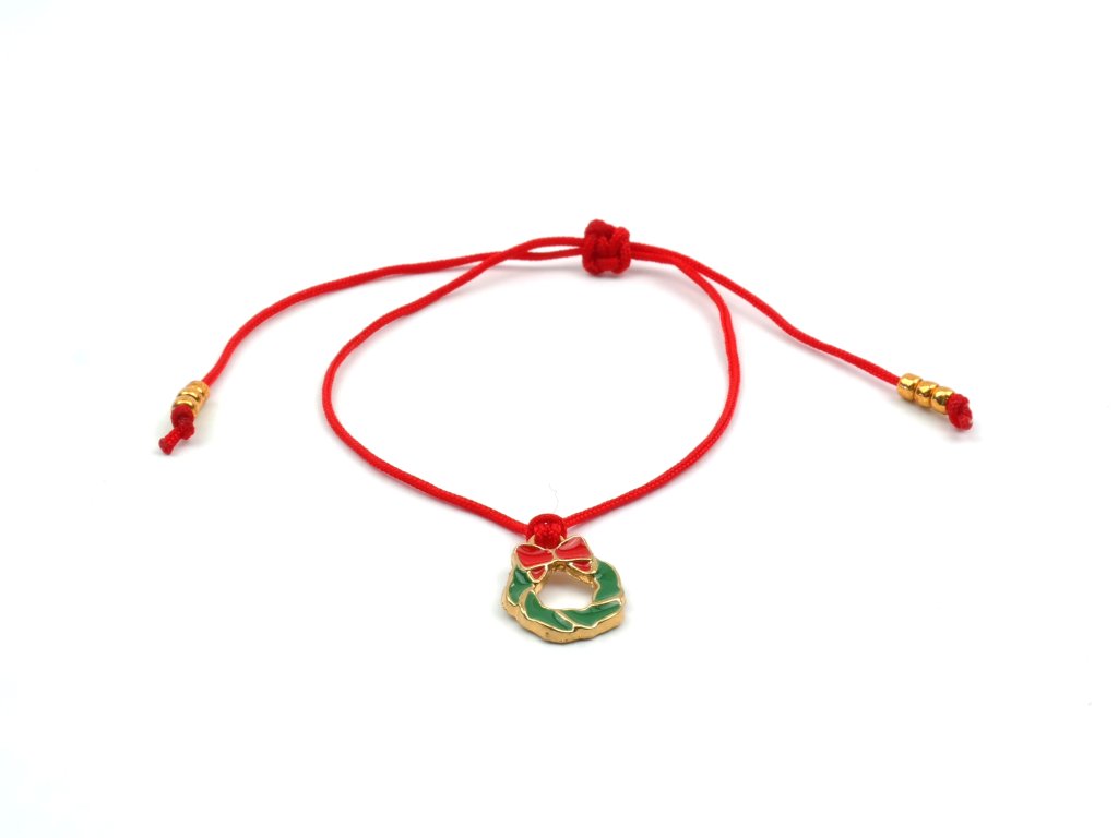 Náramek z červené nylonové šňůrky doplněn o přívěšek.