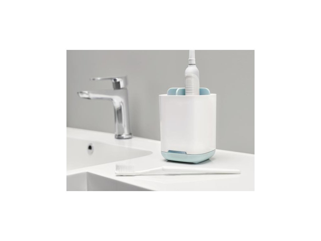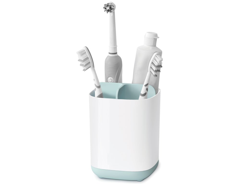Stojánek JOSEPH JOSEPH EasyStore rozdělený do 3 sekcí poskytujících prostor pro běžné kartáčky, elektrické kartáčky a pastu. Snadno rozebratelný a čistitelný, s odvětrávacími otvory pro rychlé vysychání a protiskluznou základnou. Dodáván ve dvou velikostech