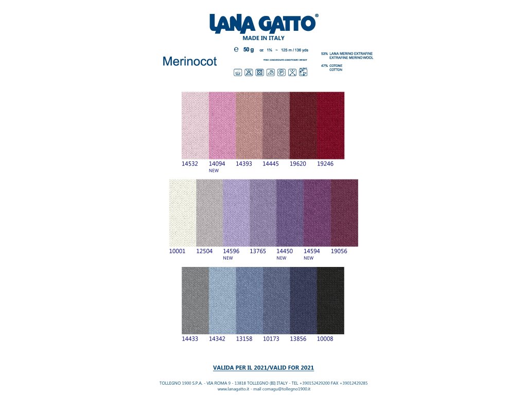 Příze MERINOCOT od italského výrobce značky Lana Gatto. Příze je složena z 53 % merino vlny extrafine a 47 % bavlny.