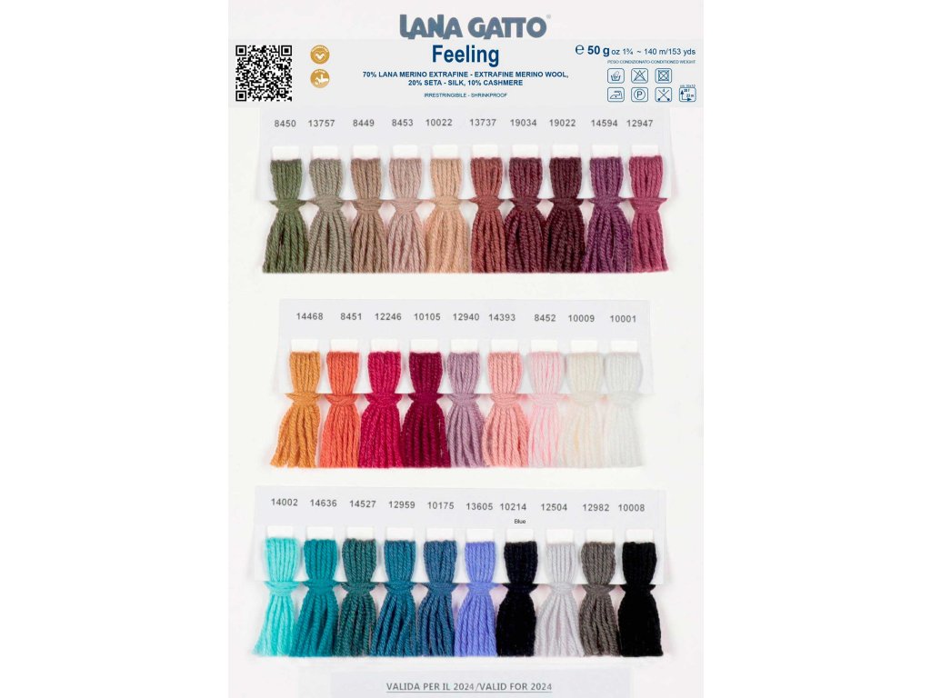 Příze FEELINF od italského výrobce značky Lana Gatto. Příze je složena ze 70 % merino vlny extrafine, 20 % hedvábí a 10 % kašmír.