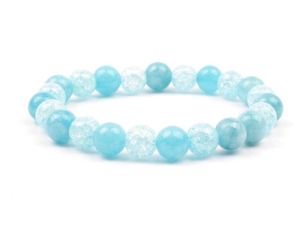Náramek je vyroben z korálků angelitu a křišťálu praskaného o průměru 8 mm.