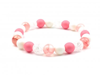 Ručně vyráběný dámský náramek z korálků korálového jadeitu o průměru 6 mm. Ozdobeno srdíčkem.