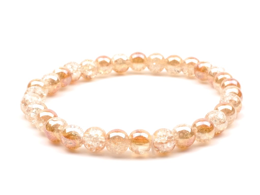 Náramek je vyroben z korálků křišťálu praskaného pokoveného sunset o průměru 6 mm.