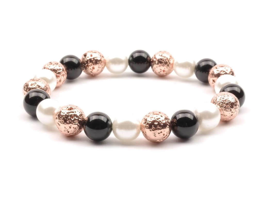 Moni - dámský náramek onyx láva perly bílé