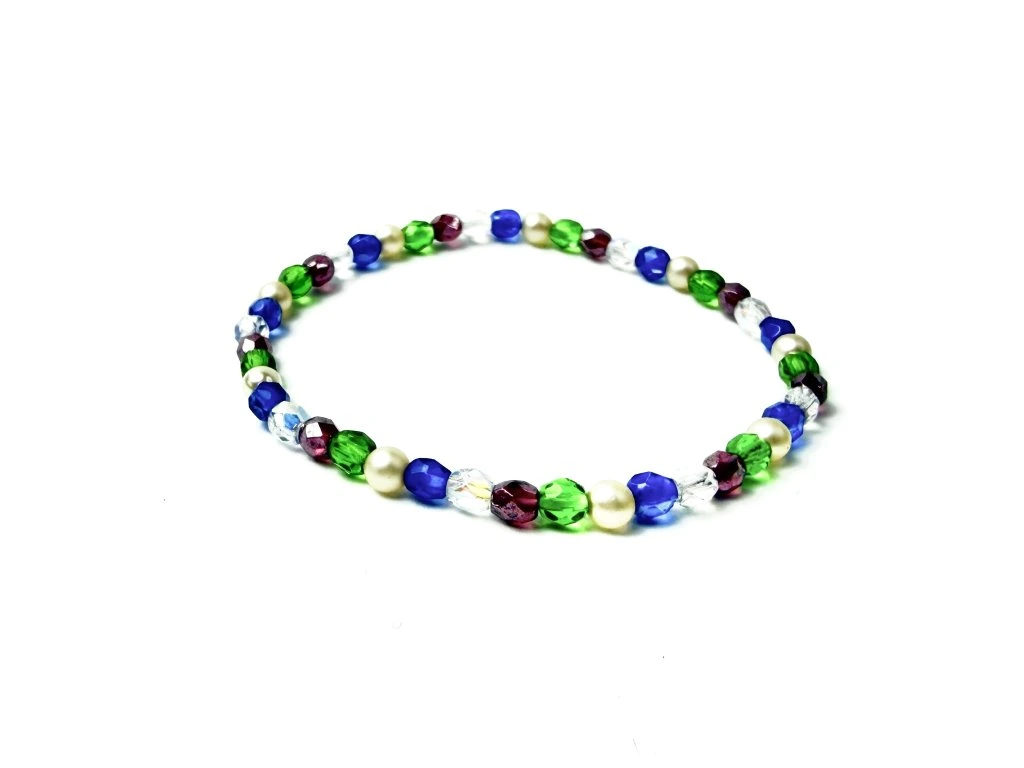 Náramek je vyroben z českých skleněných broušených korálků 4 mm a skleněných perel.