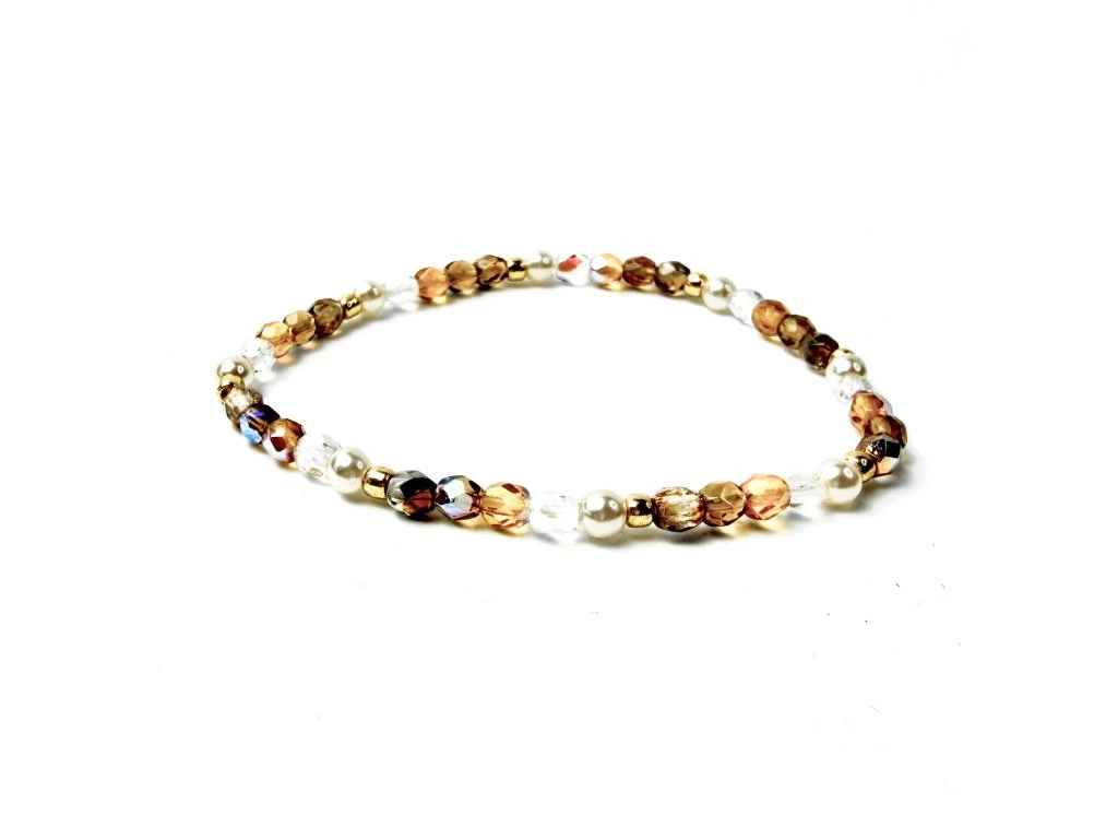 Náramek je vyroben z českých skleněných broušených korálků 4 mm a skleněných perel.