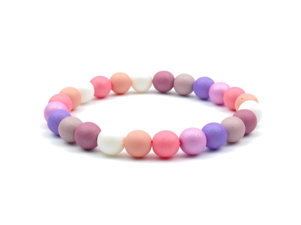 Náramek je vyroben z českých skleněných perliček v matné úpravě Estrela Neon o průměru 8 mm.