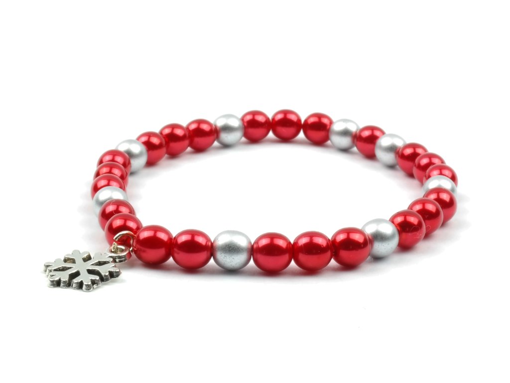 Náramek je vyroben z českých skleněných korálků Estrela o průměru 6 mm, vločka z bižuterního kovu.