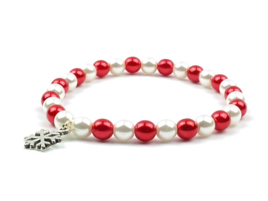 Náramek je vyroben z českých skleněných korálků Estrela o průměru 6 mm, vločka z bižuterního kovu.