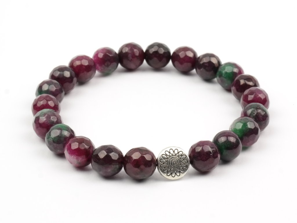 Náramek je vyroben z korálků broušeného turmalínu o průměru 8 mm, doplněno kovovým korálkem.