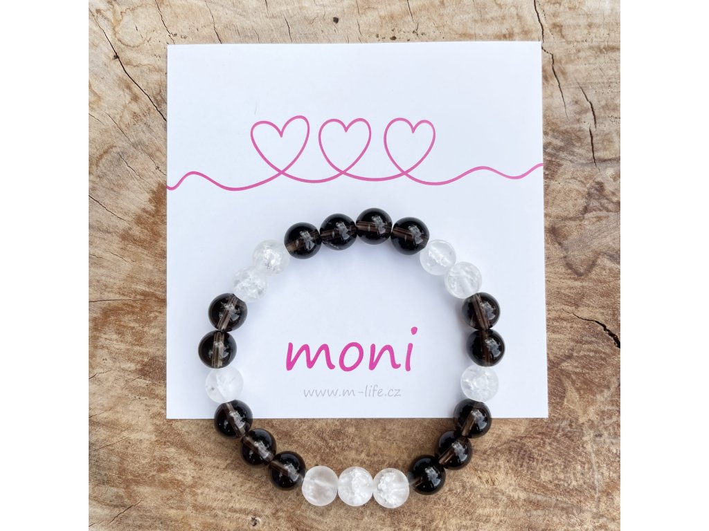 Náramky a jiné šperky značky MONI jsou ručně vyráběné z přírodních i syntetických minerálů a z českých skleněných korálků od značky ESTRELA. Značka ESTRELA patří k předním výrobcům skleněných korálků v jabloneckém regionu. Jako vstupní materiál pro výrobu skleněných korálků je vždy používán český křišťál.