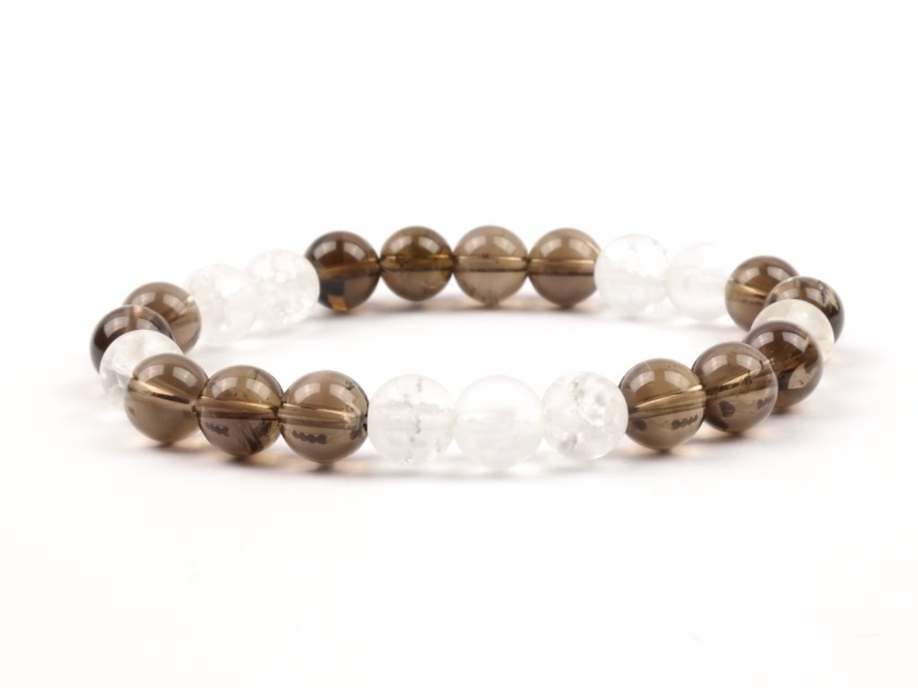 Náramek je vyroben z korálků přírodní záhnědy a křišťálu praskaného matného o průměru 8 mm.