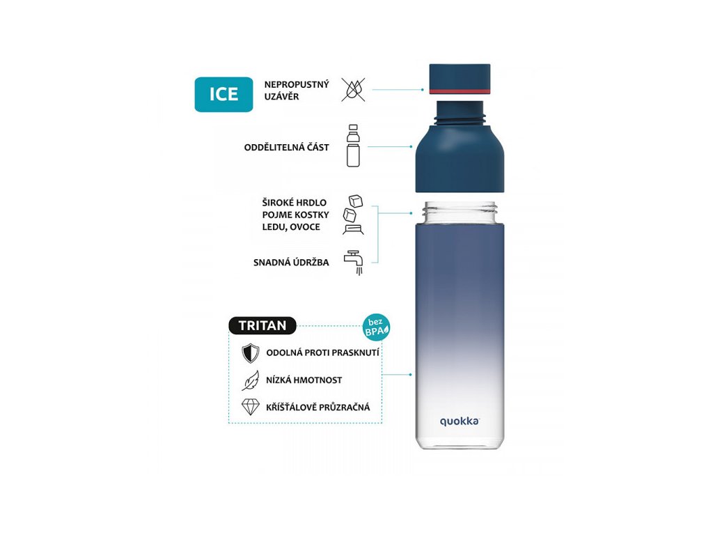 Láhev z kolekce Ice Kids o objemu 430 ml. Díky možnosti otevření v těle láhve můžete přidat všechny potřebné ingredience jako led a ovoce. Láhev je také 100 % nepropustná a vyrobená z materiálu tritan, což ji činí lehkou a odolnou.