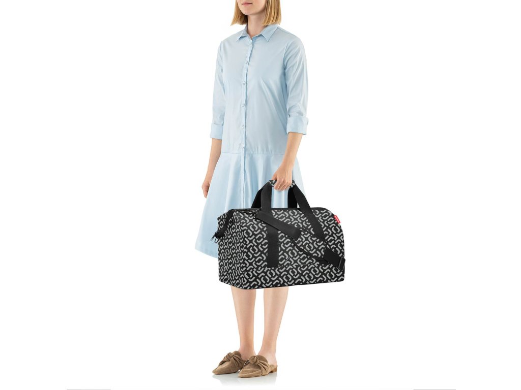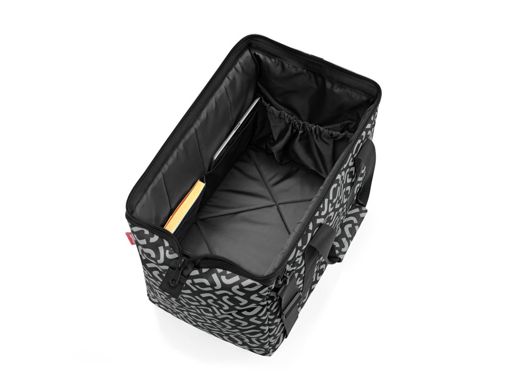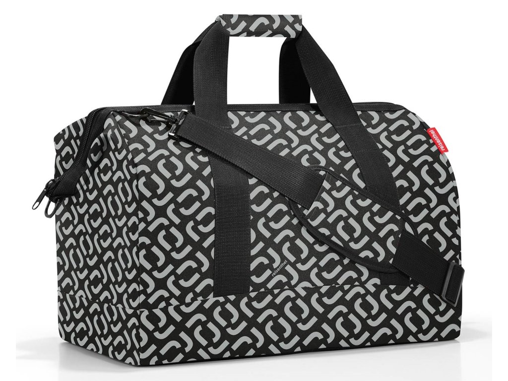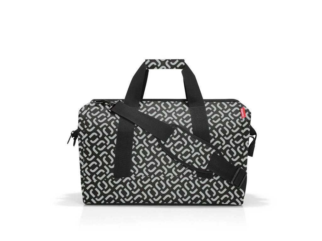 Cestovní taška Allrounder L signature black, je velmi kvalitní a zpevněná. Má dvě kovová ramena zašitá ve švu, která drží tvar a stabilitu tašky při otevření. Vše je přehlednější a jednoduší, nejen díky bočním kapsám a velkého prostoru uvnitř. Pevné lemování a popruhy do rukou, a též vypolstrovaný řemen přes rameno. Opět skvělý design tašky svědčí o dobrém vkusu firmy Reisenthel, která myslí na dobré a praktické cestování.