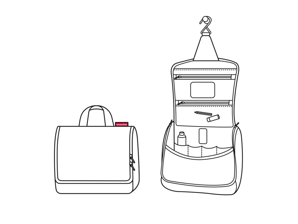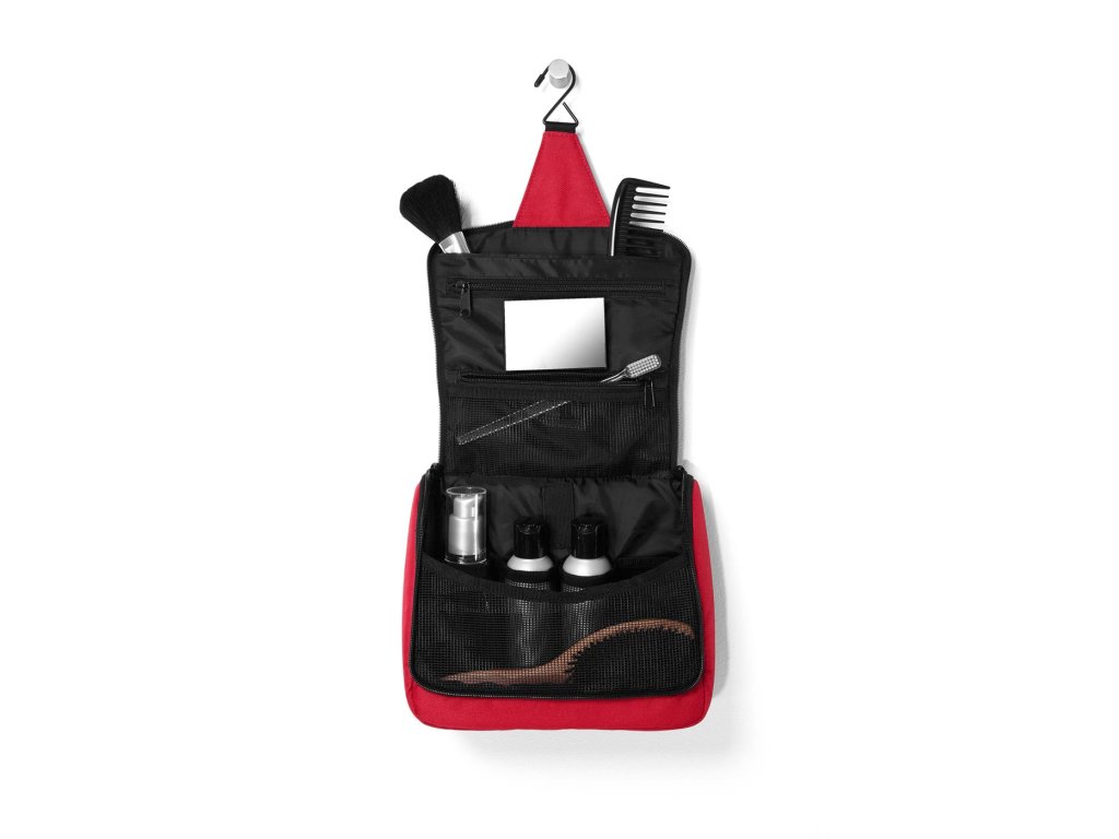 Kosmetická taška elegantního designu. Pevný odolný materiál. Praktické vnitřní členění s mnoha kapsičkami a úchytkami . Nyní již nemusíte v místě pobytu hledat poličku na umístění kosmetických potřeb. Stačí, když rozevřete tašku, háčkem pověsíte. Uvnitř naleznete zrcátko, mnoho upotřebitelných kapsiček, gumičkový úchyt. Nyní budete mít více věcí pohromadě, nemusíte se bát, že se vám líčidla otevřou v tašce a udělají špatně odstranitelné skvrny na čistém prádle.