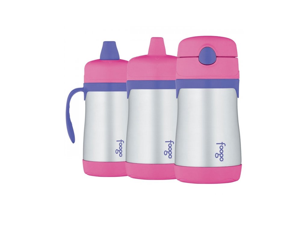 Nerezová vakuově izolovaná termoska Foogo je termoska s brčkem pro nejmenší děti. Na jedno tělo termosky je možné nasadit tři různé uzávěry podle věku a potřeb dítěte. Měkké pítko pro děti od 6. měsíce (stupeň 1), tvrdé pítko pro děti od 12. měsíce (stupeň 2) a brčko pro děti od 18. měsíce (stupeň 3) - s tímto pítkem je termo-láhev dodávána. Termoláhev a jednotlivá pítka jsou navržena tak, aby se děti dokázaly sami napít. Termoska Foogo udržuje požadovanou teplotu nápojů po dlouhou dobu, je lehká, snadno se vejde do batohu, kočárku, či držáku nápojů v automobilu. |