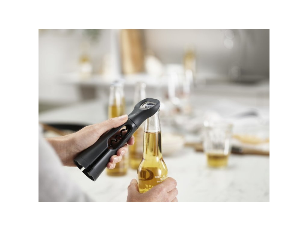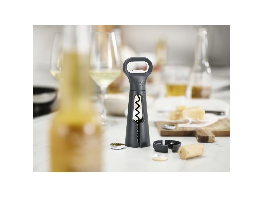 Vývrtka, otvírák zátek a odnímatelný ořezávač fólií v jednom kompaktním designu - JOSEPH JOSEPH BarStar 20173. Nepřilnavý povrch vývrtky umožňuje otevírání všech druhů špuntů.